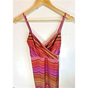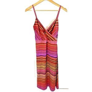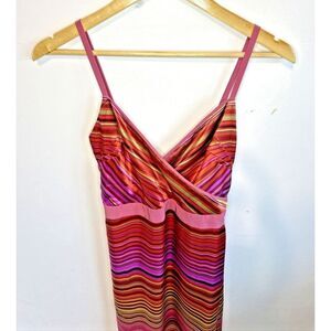 Banana Republic Vintage 90s Womens V Neck Striped Silk Side Zip Elastic Chest Dress Size 2