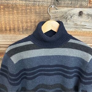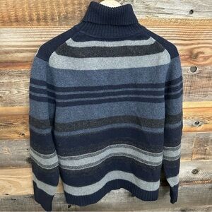 This men’s banana republic, 100% lambs wool turtleneck striped sweater is a size large and is in great preowned condition. Please see photos as they are part of the description and show the wear and condition of the sweater Questions? Leave a comment below!