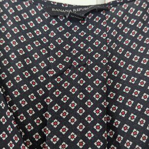 Banana Republic V-neck Navy Geometric Shell. Navy with white and red geometric pattern. Excellent Used condition. Size Large.
