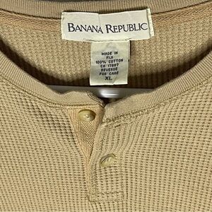 Banana Republic Waffle Henley Size XL Camel 2 Button Textured Limited Summer Men