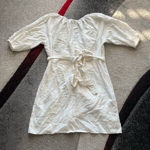 Banana Republic White 1/2 Sleeve Linen Blend Wrap Dress
