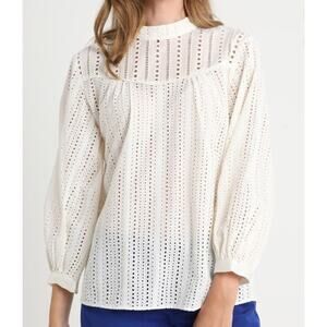 Banana Republic White Eyelet Mock-Neck Peasant Blouse 3/4 Sleeves Size Small