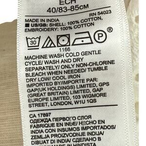 This charming Banana Republic blouse features a delicate eyelet design in a crisp white, mock-neck silhouette with flattering 3/4 satin-trimmed sleeves. While the brand tag and size is removed, measuring approximately 18″ pit-to-pit, 15.5″ shoulder-to-shoulder, and 22″ in length from the top of the shoulder to hem on the back. Satin cuff. Closure via buttons at back of neck. Peasant/prairie style that's both feminine and versatile. In excellent used condition
