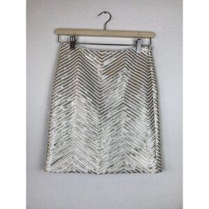 Banana Republic White & Gold Sequined Pencil Skirt Size 00P