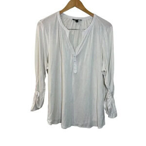 Banana Republic White Henley Top XL Long Sleeve Roll Tab V Neck Neutral Stretch