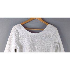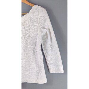 Banana Republic White Jacquart Knit Tunic Top Quilted Scoop Back 3/4 Sleeve Boho