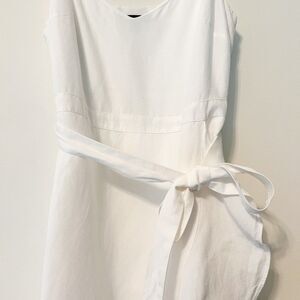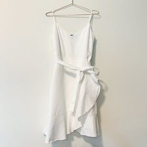 Banana Republic White Linen Blend Ruffle Wrap Spaghetti Strap Dress 14 Petite