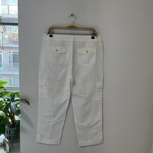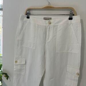 Banana Republic White Martin Fit Linen Crop Pants Size 10. Excellent condition, like new. Classic button & zip fly closure. Cargo style pants with multiple pockets on the sides.
