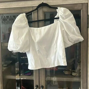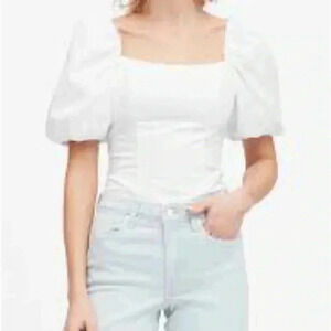 Elevate your wardrobe with this chic Banana Republic puff sleeve blouse in crisp white. Featuring a flattering square neckline, dramatic puff sleeves, and a comfortable smocked back for a perfect fit. New with tags and never worn – perfect for pairing with denim or a skirt for a polished look.