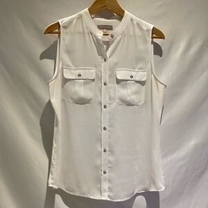 Banana Republic White Sleeveless Safari Blouse with Silver buttons, size 12