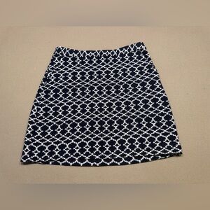 Banana Republic White and Navy A-Line Jacquard Skirt