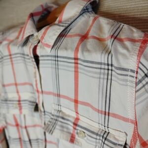 Banana Republic White and Orange Plaid Button Down Shirt