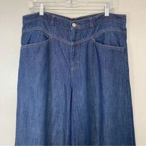 Banana Republic Wide Leg Jean Woman 32 Blue Baggy Pockets Boho Western Grunge