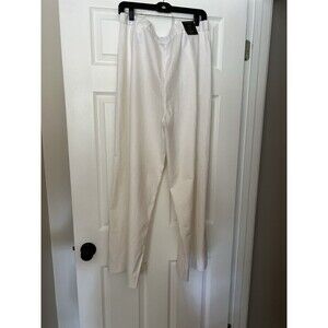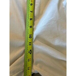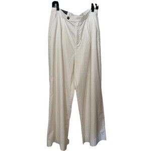 The Banana Republic Wide Leg Pants in size 12 offer a high-rise and relaxed fit, crafted from a linen blend material with pleats at the front. These versatile pants can be worn for various occasions including travel, parties, casual outings, formal events, and business meetings. The white color and solid pattern make them easy to pair with different outfits, while the easy-care, stretchy fabric ensures comfort. Featuring a zip and button closure, these pants also have convenient pockets and are machine washable for effortless maintenance. Perfect for summer, fall, and spring, these wide-leg pants exude a loungewear or bohemian vibe.