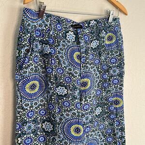 Banana Republic Wide Leg Pants Linen Blue Print Floral Summer Flower Power 70s
