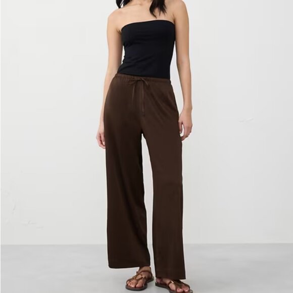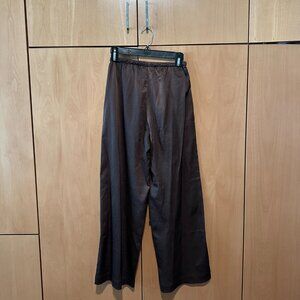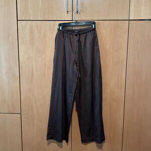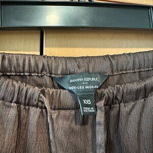 SOLD OUT Banana Republic Wide-Leg Crinkled Satin Pull-On Pants. Color is Dark Oak (aka Espresso Brown) in size XXS.