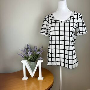 Banana Republic Windowpane Print Blouse. Black and white color. Short sleeved pull over style. Excellent condition. Slight high low hem.