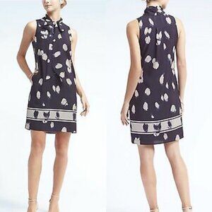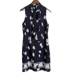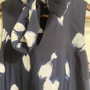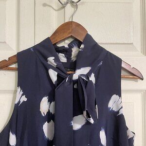 Banana Republic Women Blue Abstract Tie Neck Sleeveless Pockets Midi Dress Small