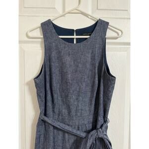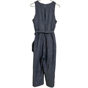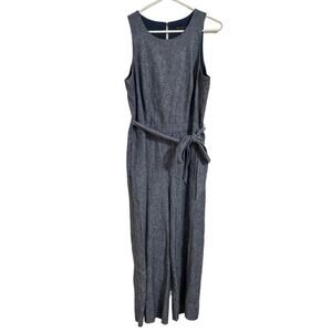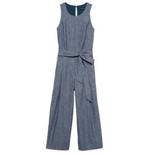 Banana Republic Women Chambray Blue Linen Blend Tie Waist Jumpsuit, Size 4