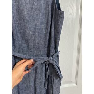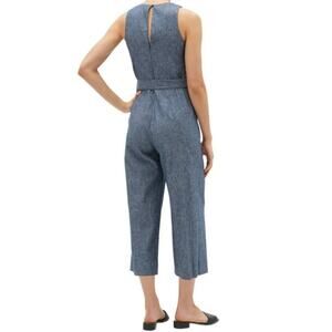 Banana Republic Women Chambray Blue Linen Blend Tie Waist Jumpsuit