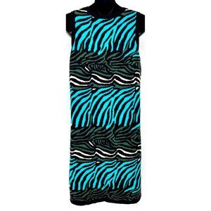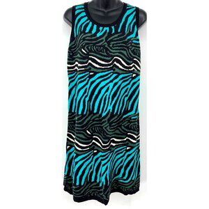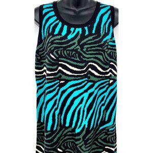 Banana Republic Women Dress Knit L Large Blue Green Issa Shift Zebra Sleeveless