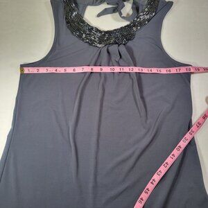 Banana Republic Women Embellished Sleeveless Beaded Neck Tank Top Gray Size L