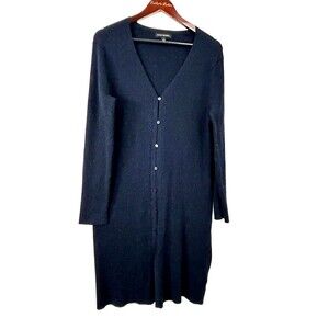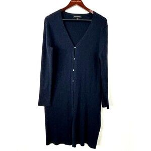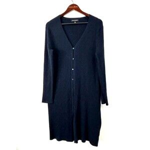 Banana Republic Women Long Ribbed Cardigan Duster Sweater Womens L Black 1146E4