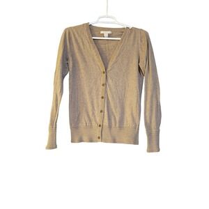 Banana Republic Women Size Small Button Up V-neck Cardigan Tan Crystal Buttons