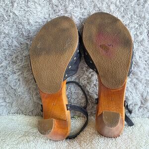 Banana Republic Women Studded Wooden Bow Denim Slingback Heels Size 11 Blue Y2K