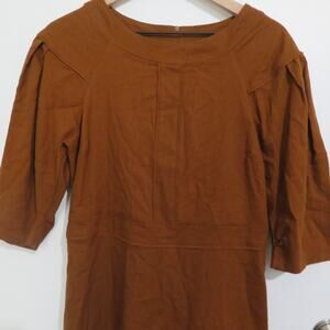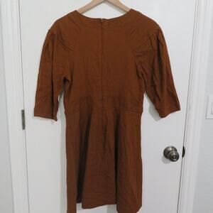 Banana Republic Women Sz 4 Brown Linen Blend Boat Neck Dress with 3/4 Sleeves