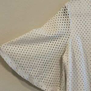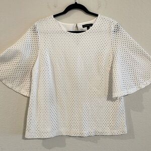 Banana Republic White Cotton Ditsy Lace Eyelet Short Bell Sleeve Pull Over Top