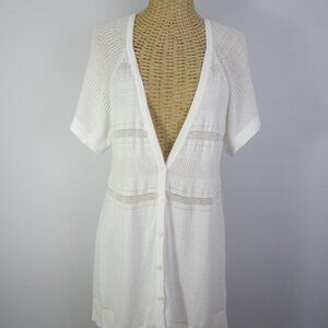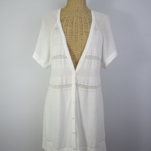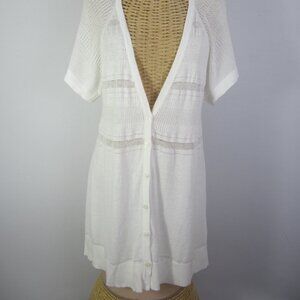 Banana Republic Women XL White SS Cotton Blend Empire Waist Long Cardigan Lace Detail Stretchy