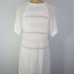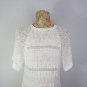 Banana Republic Women XL White SS Cotton Blend Empire Waist Cardigan Lace Detail