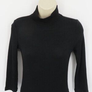 Banana Republic Women XXSP Petite XXS Solid Black Ribbed Rib Long Sleeve Dress