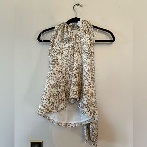 Banana Republic Womens 10 Brown Print Tie Casual Chiffon Blouse NWOT