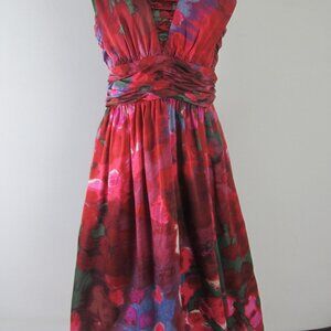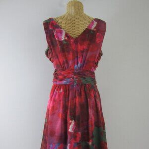 Banana Republic Womens 6 Red Green Blue Floral Empire Waist Silk Dress Small