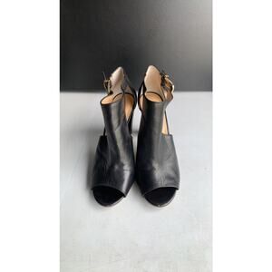 Banana Republic Women’s 9.5 Black Leather T-Strap Heels Peep Toe Ankle Shoes