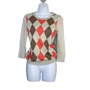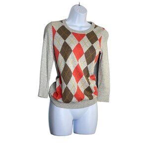 Banana Republic Womens Argyle Sweater Angora Blend Orange Grey Pullover Size XS