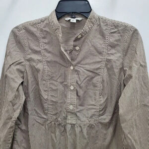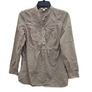 Banana Republic Women's Beige & Gray Stripe 1/2 Button LS Prairie Top Size XS