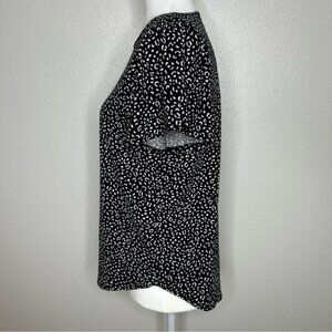 Banana Republic Womens Black Animal Print Jersey Blouse Flutter Sleeve Size S