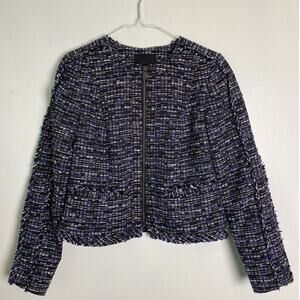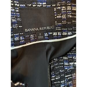 Banana Republic Women's Black Blue Tweed Zip Front Blazer Size 2