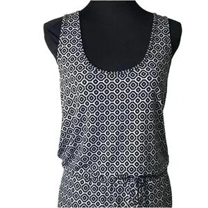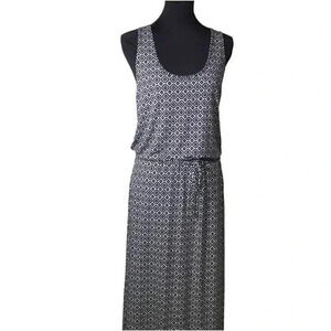 Banana Republic Women's Black & White Poly/Spandex Geometric Print Tank Maxi Dress w pockets EUC sz S