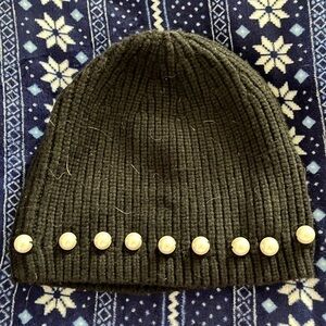Banana Republic Women’s Black Winter Hat With Pearls Sewn On And One Size NWOT See Matching Mittens!