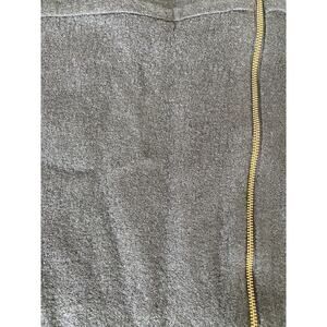This skirt is in excellent condition! There are no rips, tears, pulls, or stains. This skirt is super cute with a gold zipper that runs up the right thigh. It is the perfect skirt for a day at work and then a date at night!