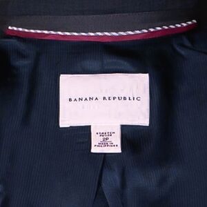 Elevate your wardrobe with this sophisticated Banana Republic Women's Blazer in size 2P. This stylish blazer features a gray solid pattern, notch lapel style, and three-button sleeve button style. The blazer is made of a high-quality blend of wool, wool blend, and spandex for a comfortable and stretchy fit. This vintage-inspired pant suit is perfect for any occasion, including travel, weddings, parties, and workwear. The tailored and lined design of this blazer creates a classic and elegant look that complements your style. The set includes a single-breasted jacket with a two-button front button style, making it perfect for formal or casual wear. This blazer cares for its user with a dry clean only garment care feature and is manufactured in the Philippines.