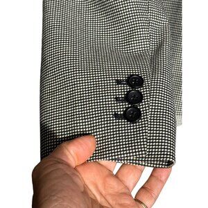 This stylish Banana Republic blazer features a classic black and white houndstooth pattern, trimmed lapel, and a single-button closure. It's ideal for a polished office look or professional setting.