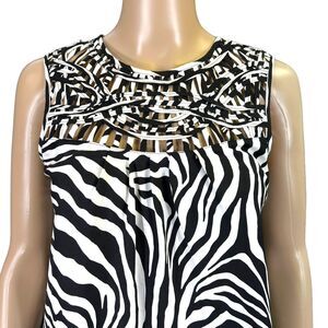 Black & Ivory Zebra Print Sleeveless Blouse Banana Republic