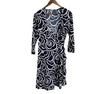 Banana Republic Womens Blue Abstract Floral Stretch Long Sleeve Wrap Dress Small