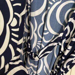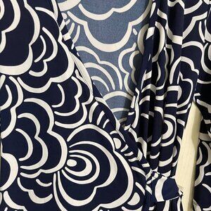 Banana Republic Womens Blue White Abstract Floral Stretch Long Sleeve Wrap Dress Small. Measurements Shoulder to shoulder: 17" Underarm to underarm: 18" Length: 37" Sleeve: 19" Waist: 26-32" Offers always welcome! Measurements are approximations taken while hanging