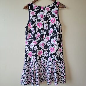Banana Republic Women's Blue, Pink and White Floral Sleeveless Drop Waist A-line Mini Dress